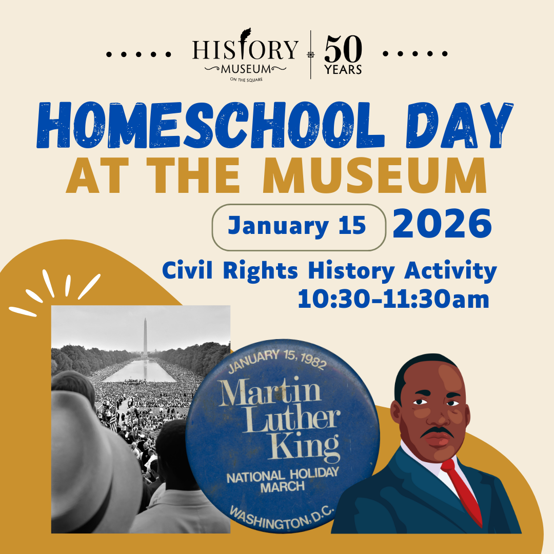 Join the History Museum on the Square for a fun look at history on the day it happened! Explore the museum and participate in a hands-on activity that coincides with historic holidays/anniversaries.